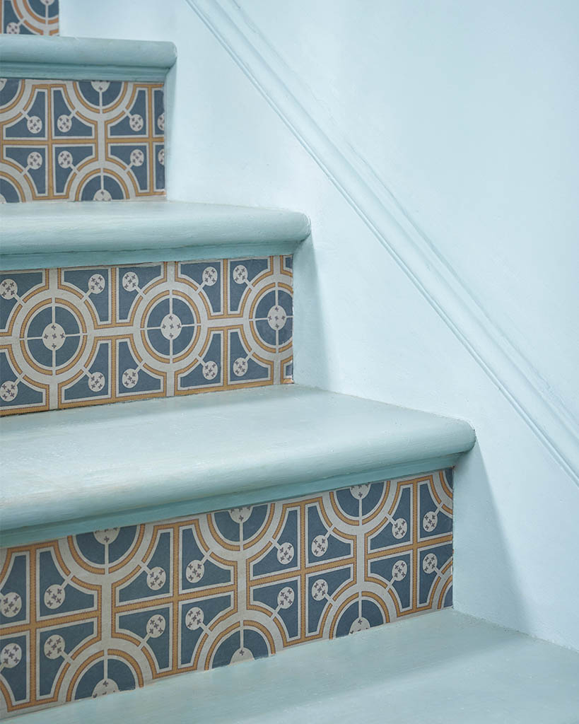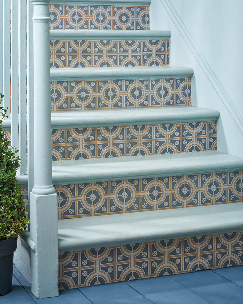 Roundabouts ist der botanischen Illustration eines Knotengarten-Designs nachempfunden. Dieses Decoupagepapier basiert auf einem Gartenplan von Stephen Blake aus dem Buch „The Complete Gardeners Practice”. Für dieses Design aus Kreisen und Quadraten wurde Aubusson Blue (erhältlich in Chalk Paint™ und Annie Sloan Wall Paint) sowie die Chalk Paint™ Farbe Tilton verwendet – eine Farbkombination, die an portugiesische Fliesen erinnert.