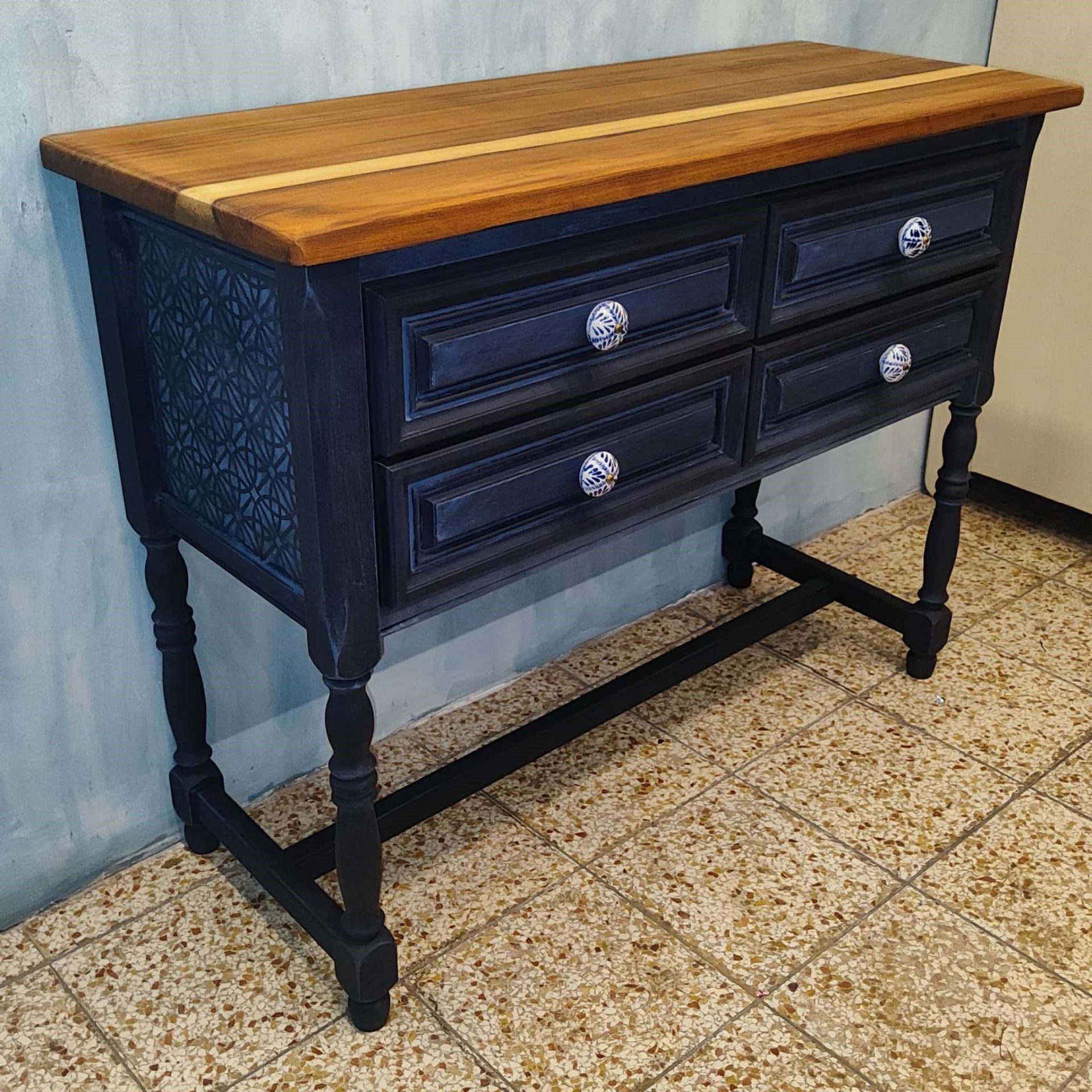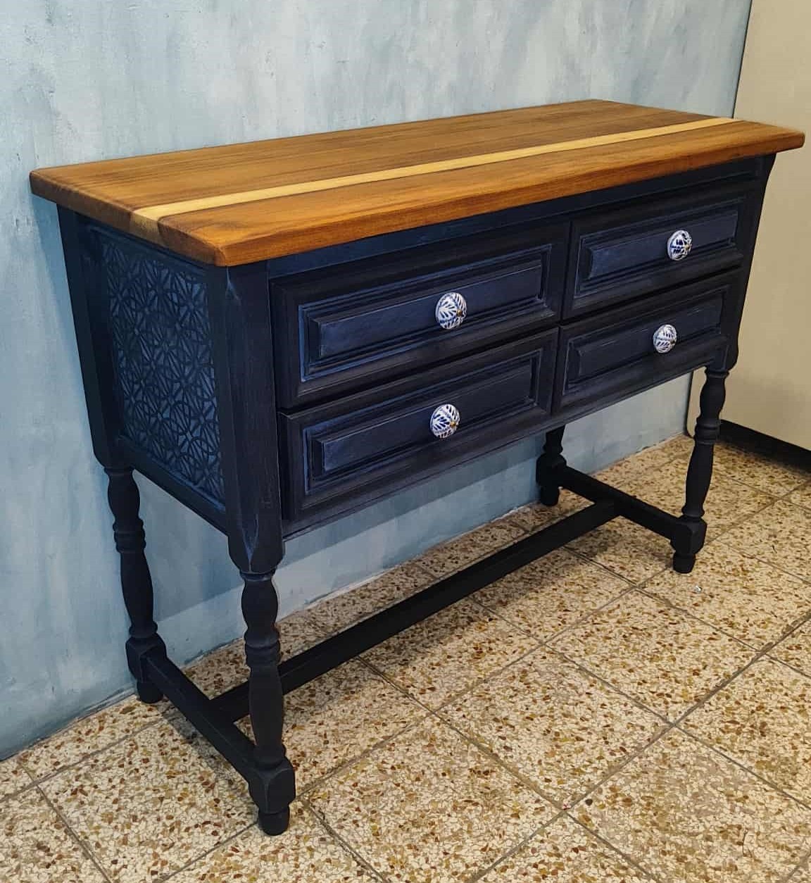 Holzommode mit ökologischen und ungiftigen Kreidefarben neu gestaltet.