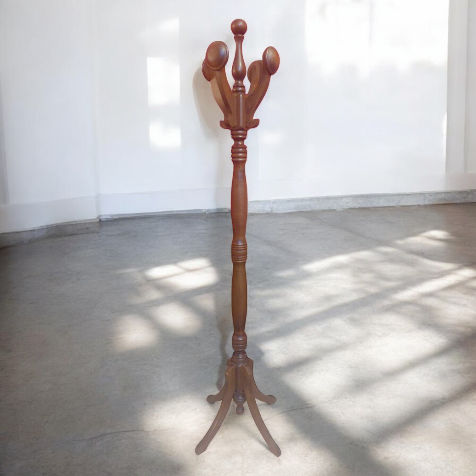 Kleiderständer aus gedrechseltem Holz.