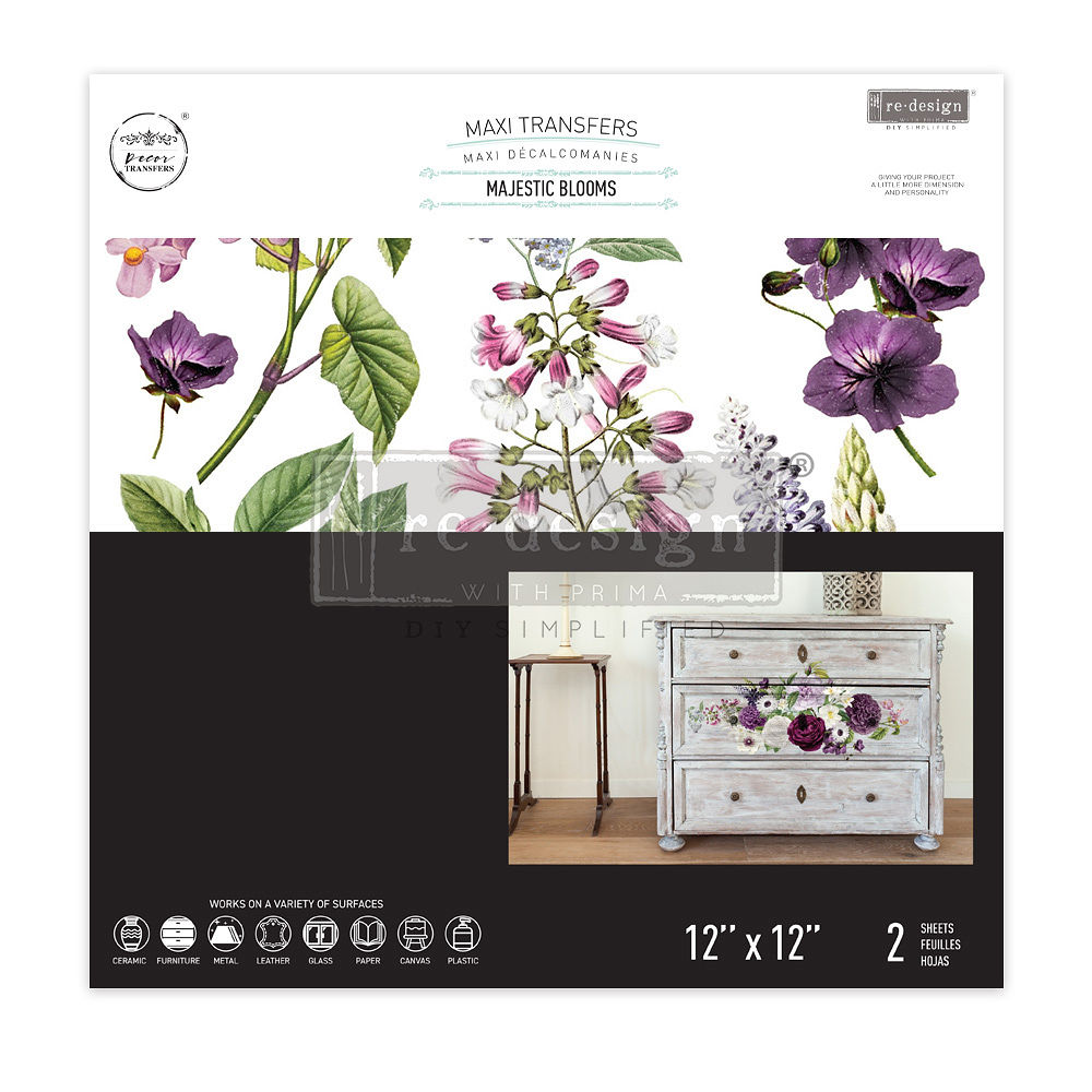 Creme- und lilafarbene Blumen – was für eine faszinierende Kombination! Dieses Majestic Bloom Decor Transfer® wird all Ihren Projekten mit Sicherheit einen wunderschönen Akzent verleihen. Die neue Größe von ca. 30 cm x 30 cm ermöglicht es, Projekte im mittleren bis kleineren Maßstab zu gestalten.