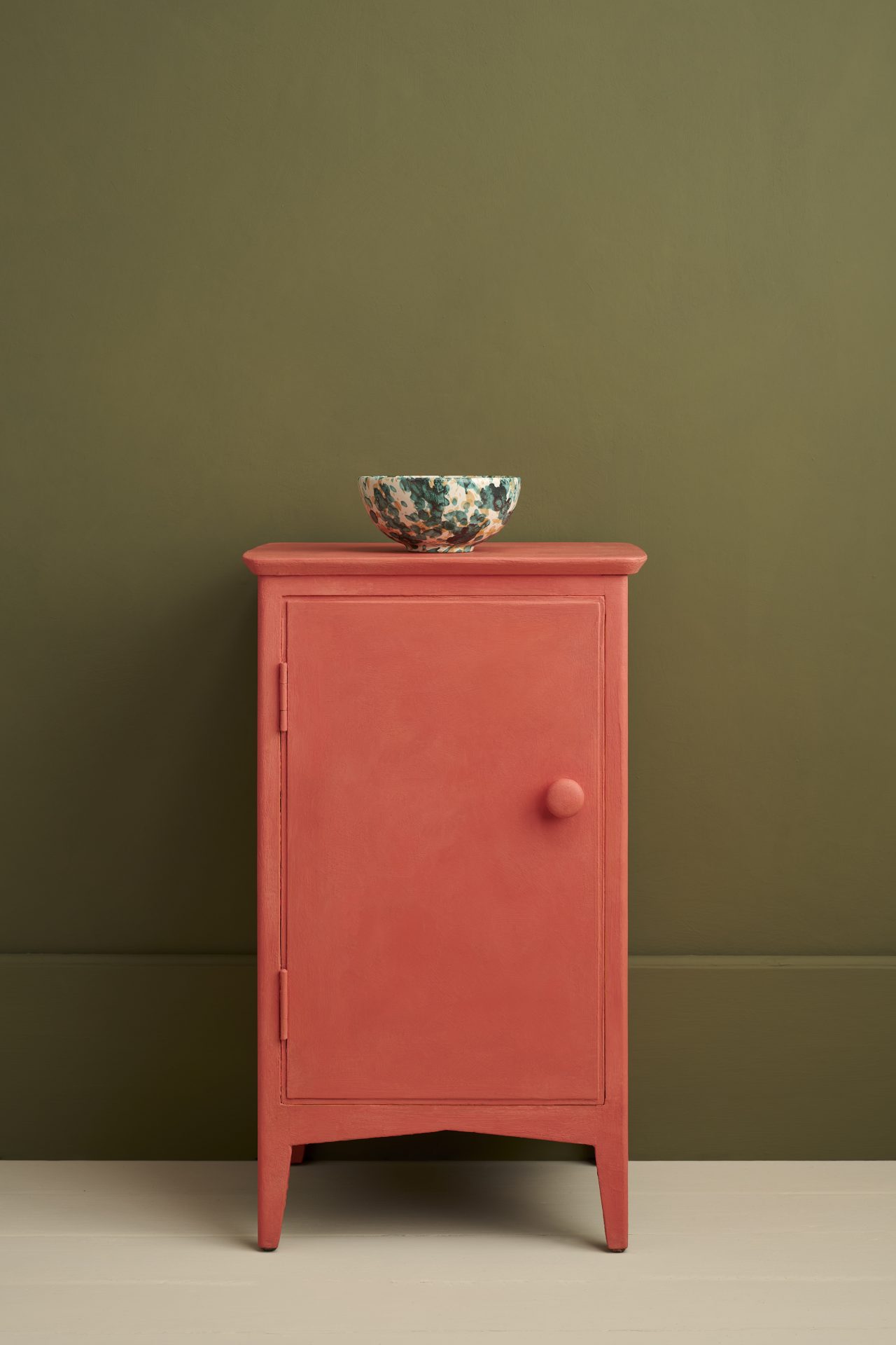 Sandalwood Red lässt sich auch wunderbar in ein farbenfrohes 50er-Jahre-Palm-Beach-Thema integrieren. In Verbindung mit Tönen wie Provence, Capability Green, Paloma, Louis Blue oder Coolabah Green entsteht ein spielerischer Retro-Stil voller Leichtigkeit und Urlaubsflair.