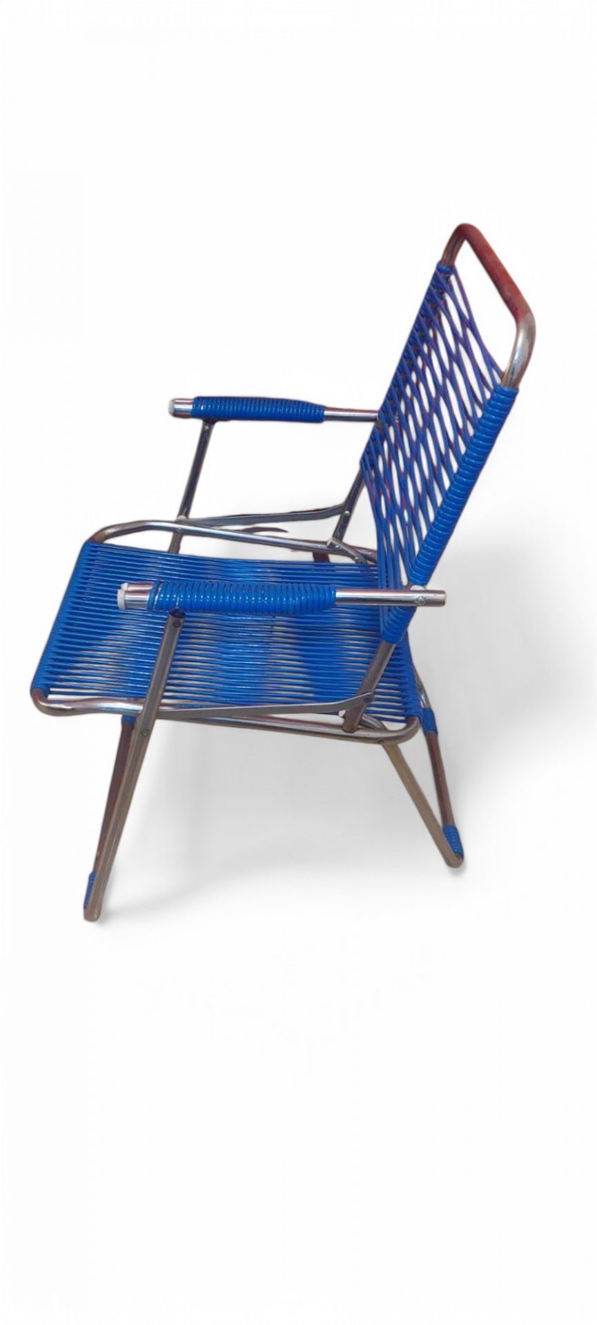 Originaler klappbarer Spaghetti-Sessel aus Italien. Stabiler Metallgestell mit Kunststoffgeflecht.