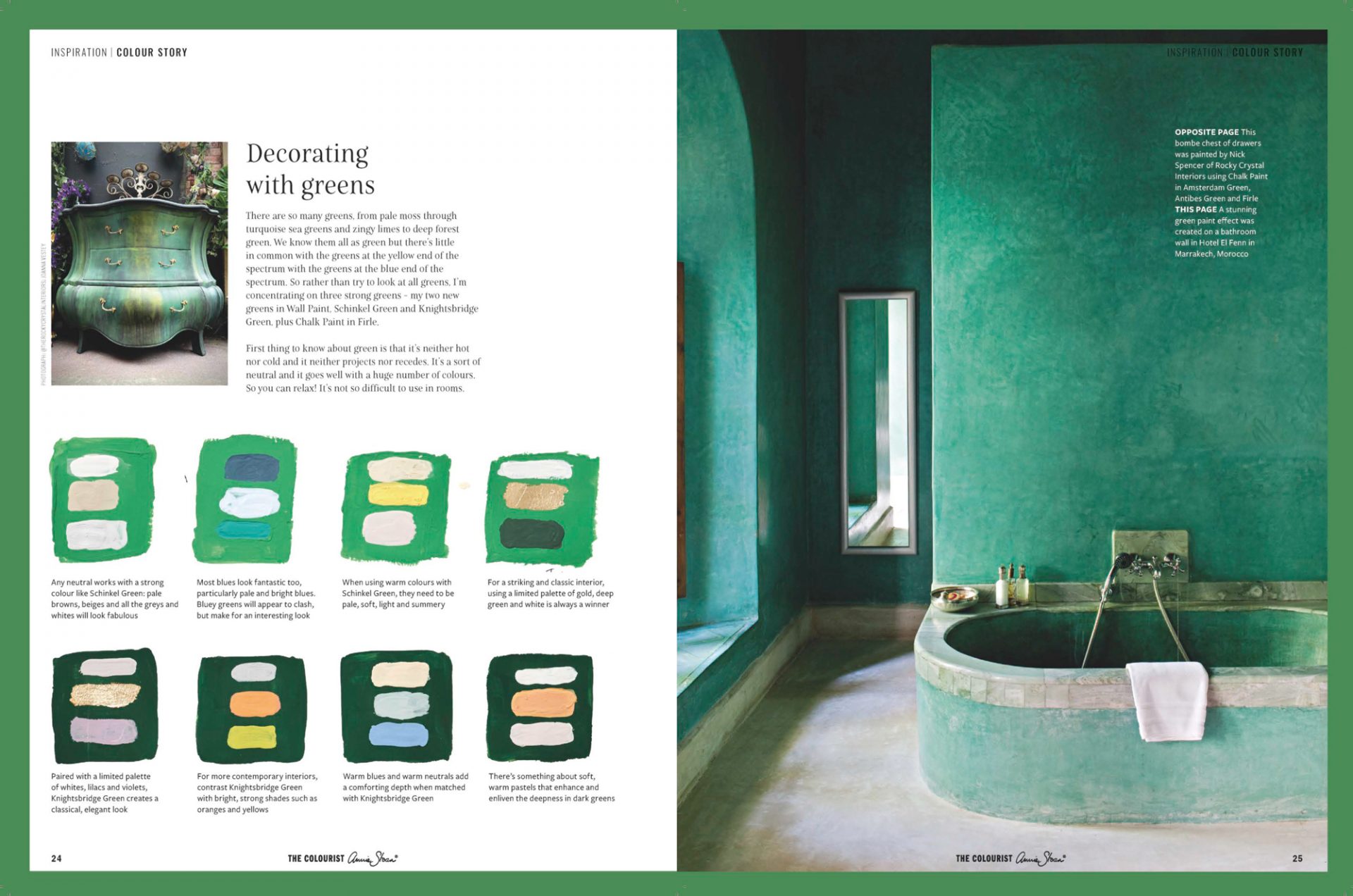Die 7. Ausgabe vom The Colourist bietet exklusive Fotos von wunderschön umgestalteten Möbeln, Home-Stories und Schritte-für-Schritt Anleitungen. Das Thema heißt diesmal „Sei grüner!” und beinhaltet die neuen Annie Sloan Wall Paint Farben Knightsbridge Green, Schinkel Green und die raffinierte grüne Kreidefarbe Firle.